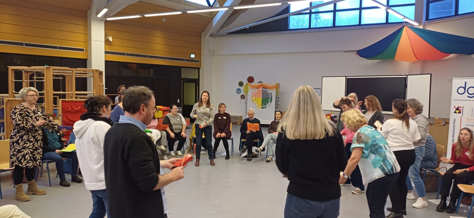Am 15.11.2023 fand der „Tag der Sprache“ (mit 31 TeilnehmerInnen) in Mainz in der Astrid-Lindgren-Schule statt. Thema in diesem Jahr war "Musik und Rhythmik in der Sprachförderung“. Die Referentin Ingrid Schol zeigte in einen lebhaften sowie praxisortierten Vortrag abwechslungsreiche Fördermöglichkeiten und Unterrichtsbeispiele zur Stäkung des