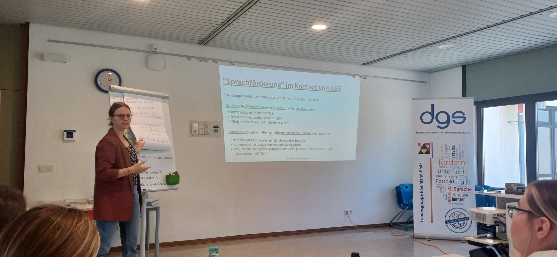 Am 30.08.2025 fand an der SFS Rülzheim die Fortbildung „Praxisstrategien mit autistischen Kindern im Schulalltag“ (mit 34 TeilnehmerInnen) statt. Die Referentin Sarah Weber (Sonderpädagogin und selbstständige Autismusberaterin) startete mit einem kurzen Einblick zum Autismus Spektrum, zeigte Diagnosekriterien nach der ICD-11 auf. Sie schilderte außerdem neurobiologische Besonderheiten sowie Wahrnehmungsbesonderheiten von Kindern mit ASS. Verdeutlicht wurden die Inhalte an entsprechenden Videobeispielen. Der Fokus lag neben Möglichkeiten den Unterricht für Kinder mit ASS und ADHS inklusiver zu gestalten und die individuellen Herausforderungen von Kindern mit Autismus und ADHS zu berücksichtigen, auf den Besonderheiten innerhalb der Sprache und Sprachentwicklung. Dabei erhielten die TeilnehmerInnen konkrete Umsetzungsideen für ein Vorgehen im therapeutischen Einzelsetting sowie im Klassenverband.