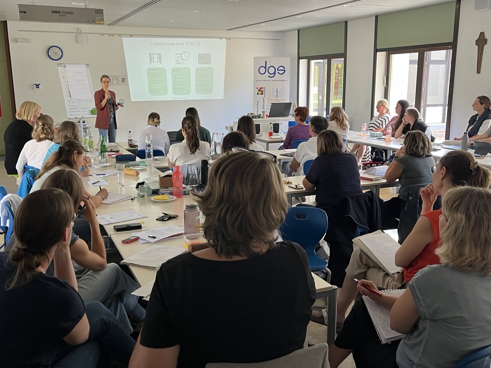 Am 15.06.2024 fand in der Volkerschule in Alzey die Fortbildung „Verbale Entwicklungsdyspraxie im schulischen Kontext“ (mit 27 TeilnehmerInnen) statt. Die Referentinnen Katharina Habib (Förderschullehrerin, SFS Singhofen) und Annette Penn (Diplom- Sprachheilpädagogin, SFS Frankenthal) starteten mit einem theoretischen Überblick zu Erscheinungsbild, Symptomen, Diagnostik sowie therapeutischen Behandlungsmethoden. Verdeutlicht wurden die Inhalte an entsprechenden Videobeispielen. Im anschließenden Workshop wurden konkrete Behandlungsansätze vorgestellt, die die Referentinnen in ihrer Berufspraxis erprobt haben. Dabei erhielten die TeilnehmerInnen konkrete Umsetzungsideen für ein Vorgehen im therapeutischen Einzelsetting sowie Einblick in ein Konzept zur Umsetzung im Klassenverband. Alle TeilnehmerInnen erhielten umfangreiches Therapiematerial, von den Referentinnen erstellte Diagnosebögen und Checklisten.